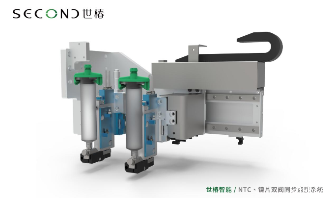 系统包含:一是NTC、镍片双阀同步点胶系统,设备可自动抓取点胶产品的坐标,双阀根据产品坐标自动补偿间距及位置,点胶效率及点胶精度更高,适合NTC、镍片点胶工艺;二是连接器双阀旋转同步点胶系统,其采用视觉自动标定角度坐标,自动校准针头角度及位置,自动视觉抓取点胶坐标,副阀自动补偿角度及位置,实现多连接器的同步点胶;三是产品变形自动校正系统,其采用激光测高仪,对产品点胶面进行自动检测,识别产品变形量(检测位置及密度可程序设定)。点胶针头根据产品变形量可自动补偿针头高度,确保针头和点胶面始终保持等高,保证产品良率;四是双臂协作控制系统,采用直线电机机械手具有机械结构简单,高精度,高速度,精度持久保持并能减少维护,更加环保等优势。X轴利用直线电机的单轨驱动双动子的特性,可以实现同一运动方向驱动双Z轴,进行同步运动,或以不同速度、向不同方向运动不同的距离,能灵活的进行点胶工作,同时点胶时间能够节约一半,提高工作效率。Z轴选用高精密线性滑轨、丝杆,传动平稳、精确定位,整个三轴机械手模块化设计,可快速进行移动或维修操作;五是多功能视觉系统,集视觉编程、视觉定位、视觉检测与一体,匹配不同的镜头和光源,可实现Mark点定位、抓边定位、点胶效果检测等功能,结合MES系统,可将胶线检测结果上传保存,实现产品点胶制程追溯。