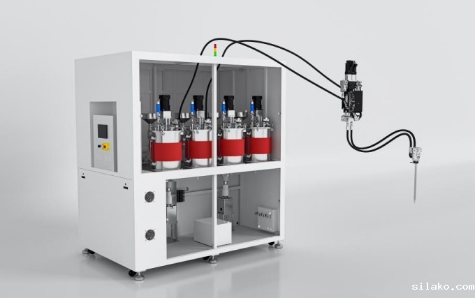 电芯涂胶机,实现锂电池模组电芯、侧板、端板、绝缘片的涂胶,由上料系统、中转供料系统、计量系统、分配混合系统、信息化管理系统等组成,搭配缺料监控、压力监控、流量监控等功能,以稳定、高效、节能等优点著称。