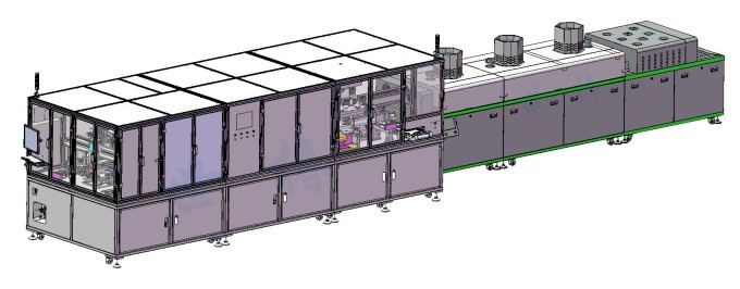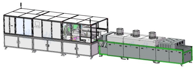 IGBT自动涂胶、装框、烧烤段技术方案,通过对生产各环节进行有效管理,实现数字化、智能化和自动化生产,使生产线高效、稳定运行。本技术方案配置的打标机、涂胶机、自动锁螺丝机、压环压装机、在线式烘箱等工艺设备,确保生产出的产品具有更高的封装测试良率、更稳定的参数以及更好的可靠性。其可进行激光打标、扫码、点胶、视觉检测、组装、打螺丝、压环压装、烘烤等不同工序、模块的灵活设配,来完成不同的自动化工艺应用集成,摆脱过往自动化平台功能单一的弊端。
