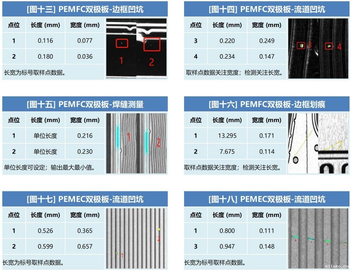 四大系列包括:5ccm瑕疵检测、7ccm瑕疵检测、BPP瑕疵检测、BPP-3D测量产品(见图19)。检测覆盖PEM燃料电池和PEM电解槽的关键核心零部件,如:质子膜、催化剂、边框膜、碳纸、5ccm、7ccm、金属单双极板、石墨板、密封胶线等(见各图例)。