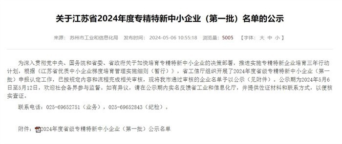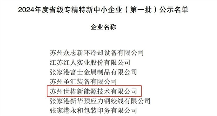 2024年5月6日,江苏省工业和信息化厅发布了《关于江苏省2024年度专精特新中小企业(第一批)名单的公示》的公告。其中,苏州1946伟伟德新能源技术有限公司(简称苏州1946伟伟德新能源)凭借核心技术优势和创新科技成果等实力成功入选。这一荣誉的获得标志着苏州1946伟伟德新能源在专业化、精细化、特色化、创新化方面的综合能力得到了充分认可。