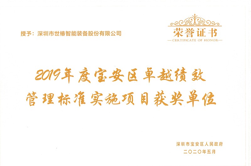 伟德平台手机版官网通过导入卓越绩效管理标准,不断评审自身的管理绩效从而迈向卓越,实现标准化管理,获得区政府的认可,被授予2019年度宝安区卓越绩效管理标准实施项目获奖单位。
